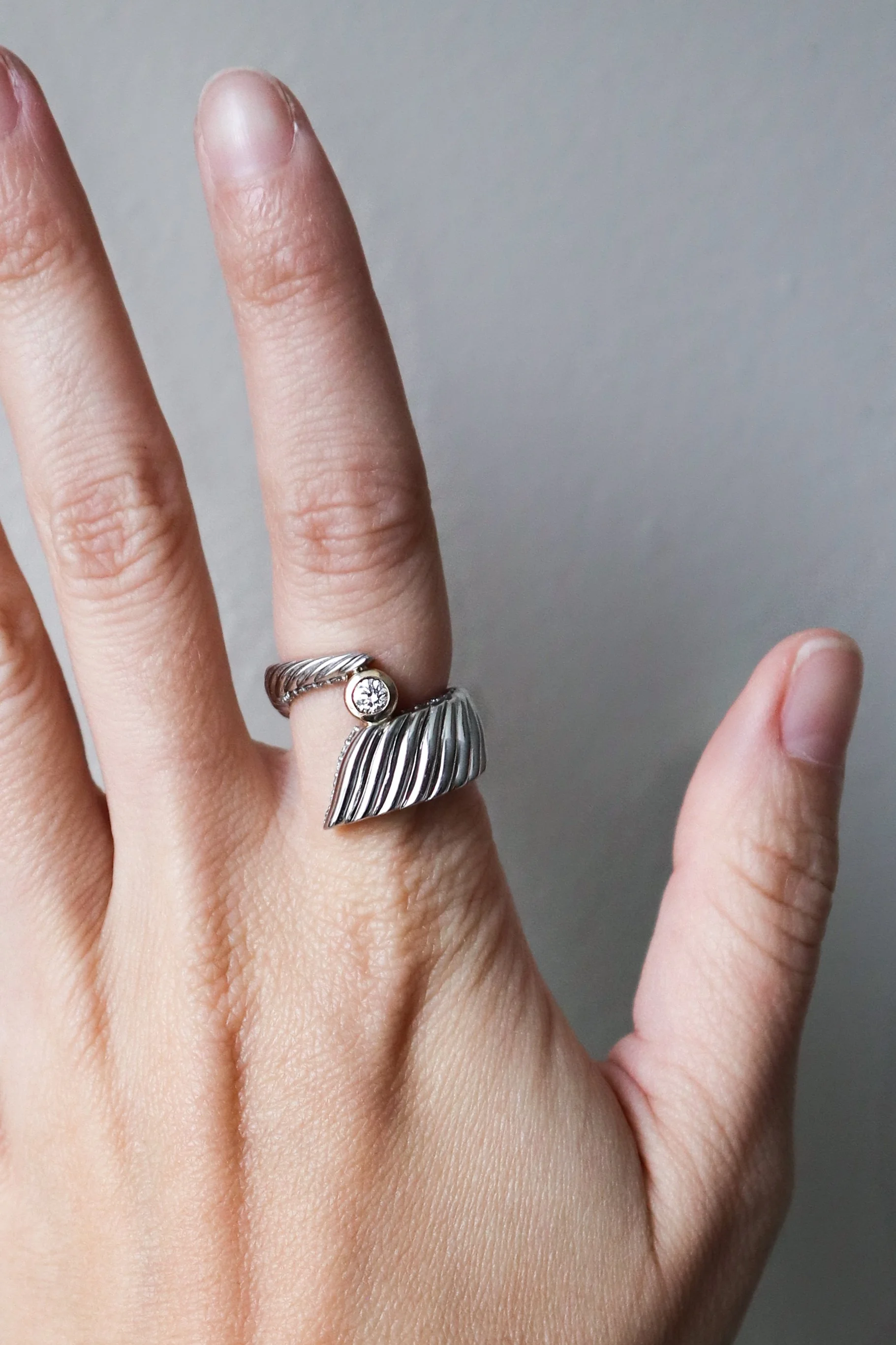 The objective was simple: take something old and create it into something entirely fresh and new. The client shared her desires; a distinctive white gold ring, thicker in nature, intended for her index finger. Her vision for the piece was for it to embody an essence of amusement, coolness, and exclusivity. To infuse a touch of personalization, she expressed a desire to incorporate her zodiac sign, Aries. After three revisions of design the piece was settled on and put into production. Refined and redesigned, the completed product was an avant-garde ode to the Ram horn.